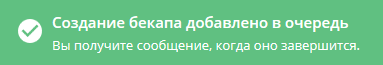 Снизу справа вы увидите сообщение о том, что создание вашего бэкапа поставлено в очередь, и как только он будет создан, вам придет уведомление.