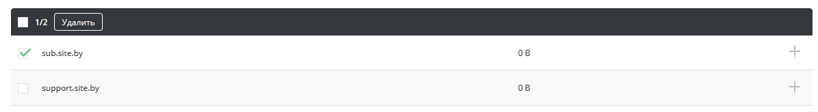 Поставьте галочку рядом с поддоменом который хотите удалить и нажмите на кнопку «Удалить».