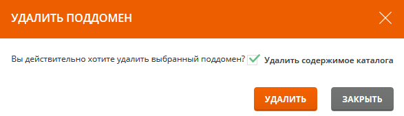 В появившемся окне поставьте галочку в пункте «Удалить содержимое каталога» если вы хотите удалить папку поддомена и все ее содержимое. Если галочку не поставить, то поддомен не будет работать, но все файлы будут сохранены.