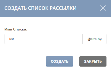 Введите имя для вашего списка рассылки и нажмите кнопку «Создать».
