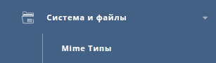 Чтобы перейти в меню Mime-типов необходимо перейти в раздел «Доп. возможности» — «Mime Типы».
