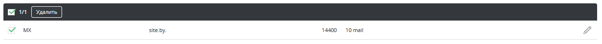 Для начала нужно удалить старые MX-записи, для этого поставьте галочки рядом с уже добавленными MX-записями и нажмите на кнопку «Удалить».