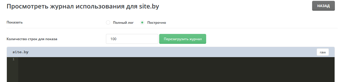 Открыв логи вы можете выбрать, сколько последних строк из лога необходимо отображать на экране. Вы также можете открыть RAW файл, нажав на соответствующую кнопку в правой части экрана. Если ваш сайт новый, то данные логи могут быть пустыми.