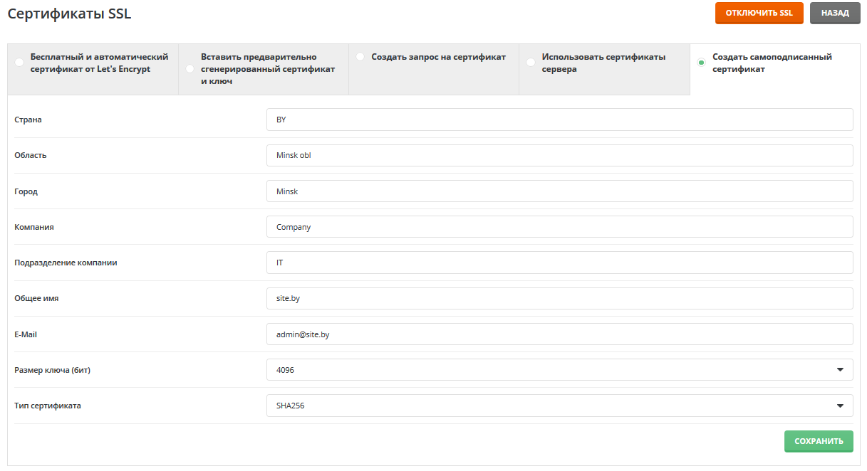 Поэтому мы не рекомендуем использовать самодписанный сертификат.